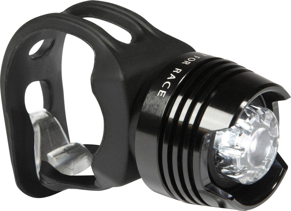Praktisch no-nonsense voorlampje met waterdichte, CNC gefreesde aluminium behuizing, LED-technologie met een lange levensduur en simple maar doeltreffende montage met een rubber klembandje.